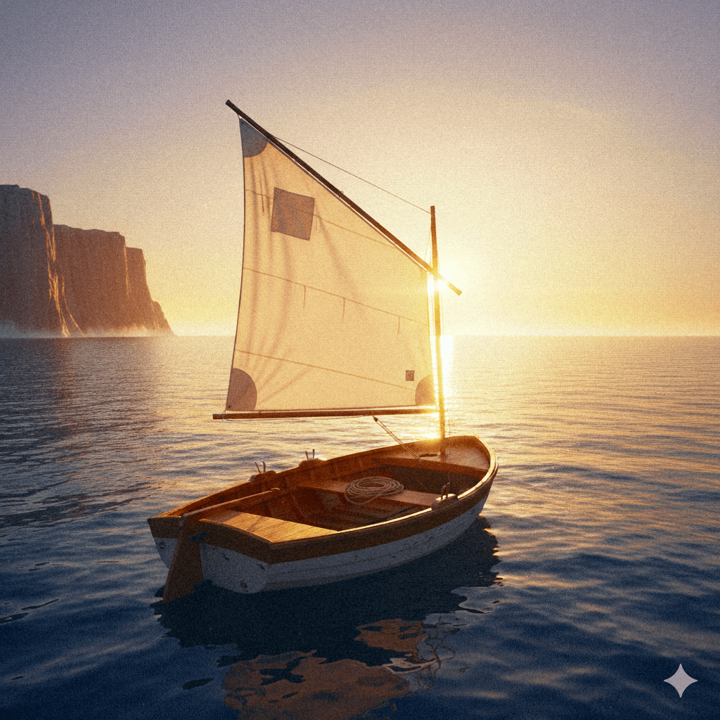 Une voile, un bout, une coque, un gouvernail.